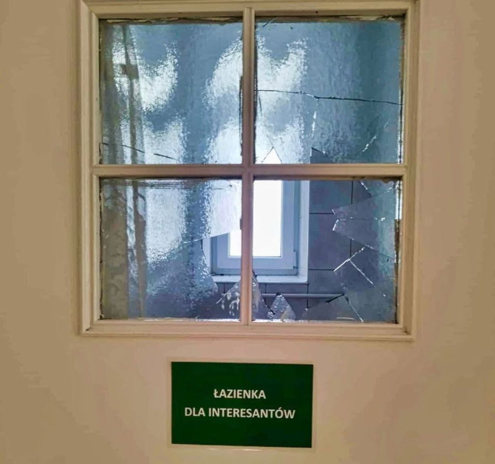 - kilka minut później wtargnął do Centrum Pomocy Socjalnej, wszczął awanturę i usiłował uderzyć pracownicę, która schroniła się w łazience; napastnik wybił szybę w drzwiach i uciekł;
