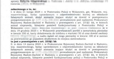 Sąd Rejonowy w Przysusze prawomocnie skazał mężczyznę, który fałszywie oskarżył interweniujących policjantów o przywłaszczenie portfela i żądanie...