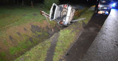 • Pijany kierowca z zakazem wjechał do rowu w Bobrówce